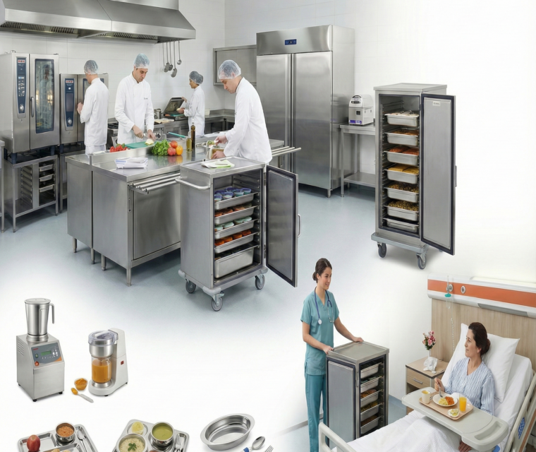 Hastanın konforunu ve güvenliğini merkeze alan tasarımlar. Motorlu hasta karyolaları, yemek masaları (overbed tables), ergonomik başucu dolapları (komodinler) ve kilitli hasta dolapları.